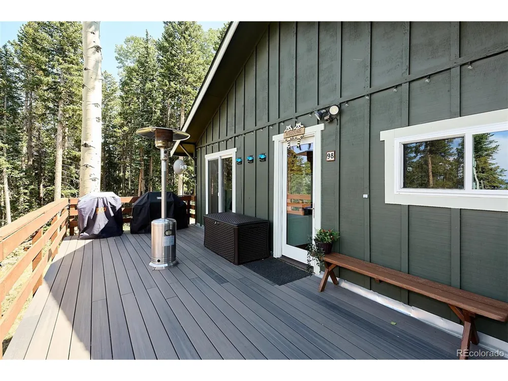 Evergreen Mountain Retreat Just 30 minutes from Denver, this charming home is tucked among the pines and aspens with peaceful views and plenty of privacy. Features include hardwood floors, a cozy moss rock, wood burning, fireplace, Trex deck, updated kitchen & bath flooring, and a versatile lower level for an office, guests, playroom or just extra storage. Bonus perks: paved pull-through driveway with planty of parking, additional RV/trailer parking to the east of the driveway, wood & storage sheds, whole-home generator wiring already in place and a newer septic (2020). This property also has a "fire break" with other mitigation measures maintained annually.